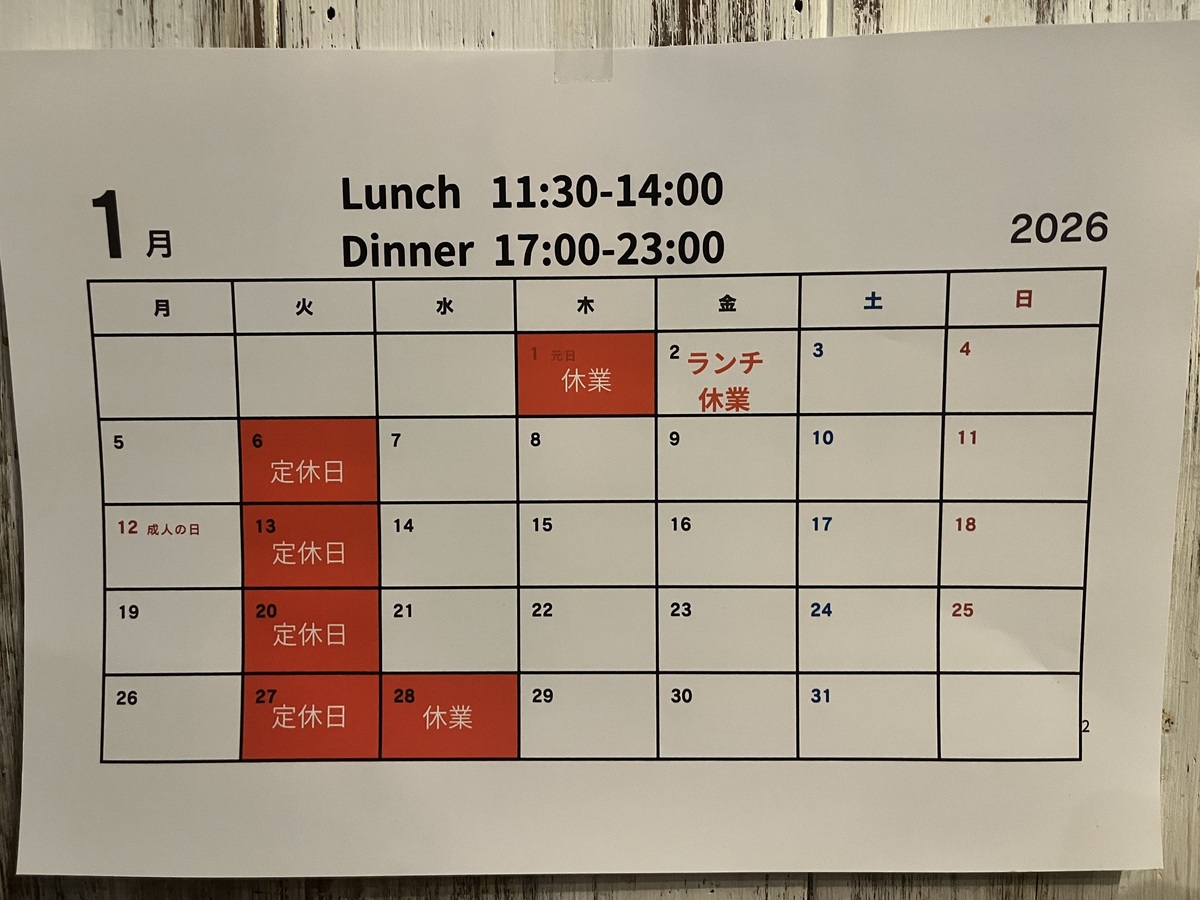 1月27日(火)と28日(水)は連休させて頂きます。今月もよろしくお願いします。